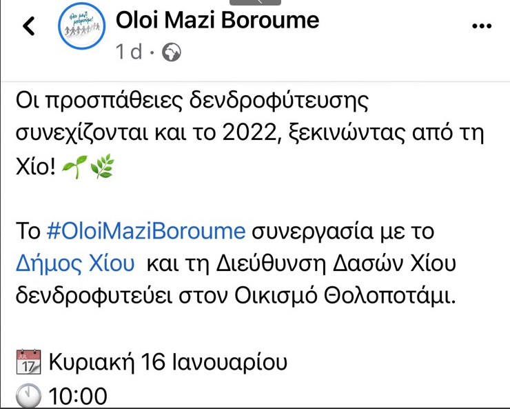 Όλοι μαζί μπορούμε. Συνεργασία του ΣΚΑΙ με τον ΔΗΜΟ ΧΙΟΥ για δεντροφύτευση από adminkaktos | Ιαν 13, 2022 | Τα Νέα μας | 0 Σχόλια Υποβολή Σχολίου Ακύρωση απάντησηςΗ ηλ. διεύθυνση σας δεν δημοσιεύεται. Τα υποχρεωτικά πεδία σημειώνονται με *Σχόλιο * Όνομα * Email * Ιστότοπος Αποθήκευσε το όνομά μου, email, και τον ιστότοπο μου σε αυτόν τον πλοηγό για την επόμενη φορά που θα σχολιάσω.